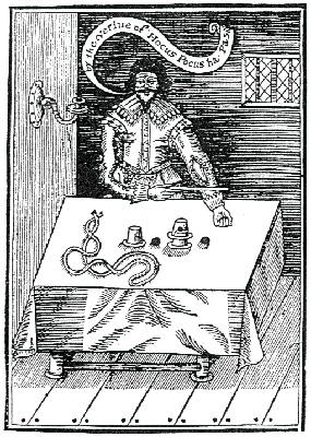 This book contains the first detailed routine for the cups and balls. I have transliterated the routine from the first (1634) edition and third (1638) edition and combined them into a document that many cups and balls aficionados have found helpful. For your own copy of this as a PDF file, click here