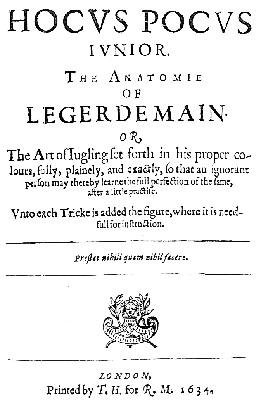 Frontispiece of Hocus Pocus Jr. 1st Edition (1634) Scans from photocopies obtained at Fondren Library Rice University, Houston, Texas
